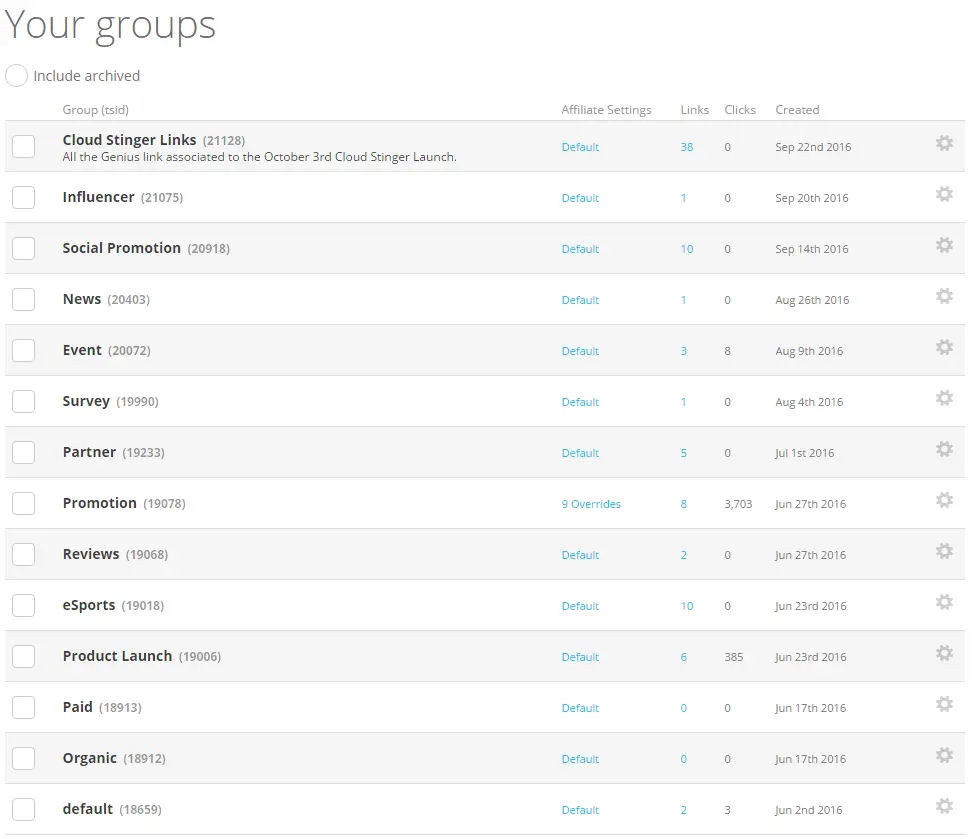 When you're creating a lot of links and promotions, it gets tough to keep track of which links were used for what campaign. Use Groups to sort your links by campaign, product type, and more.